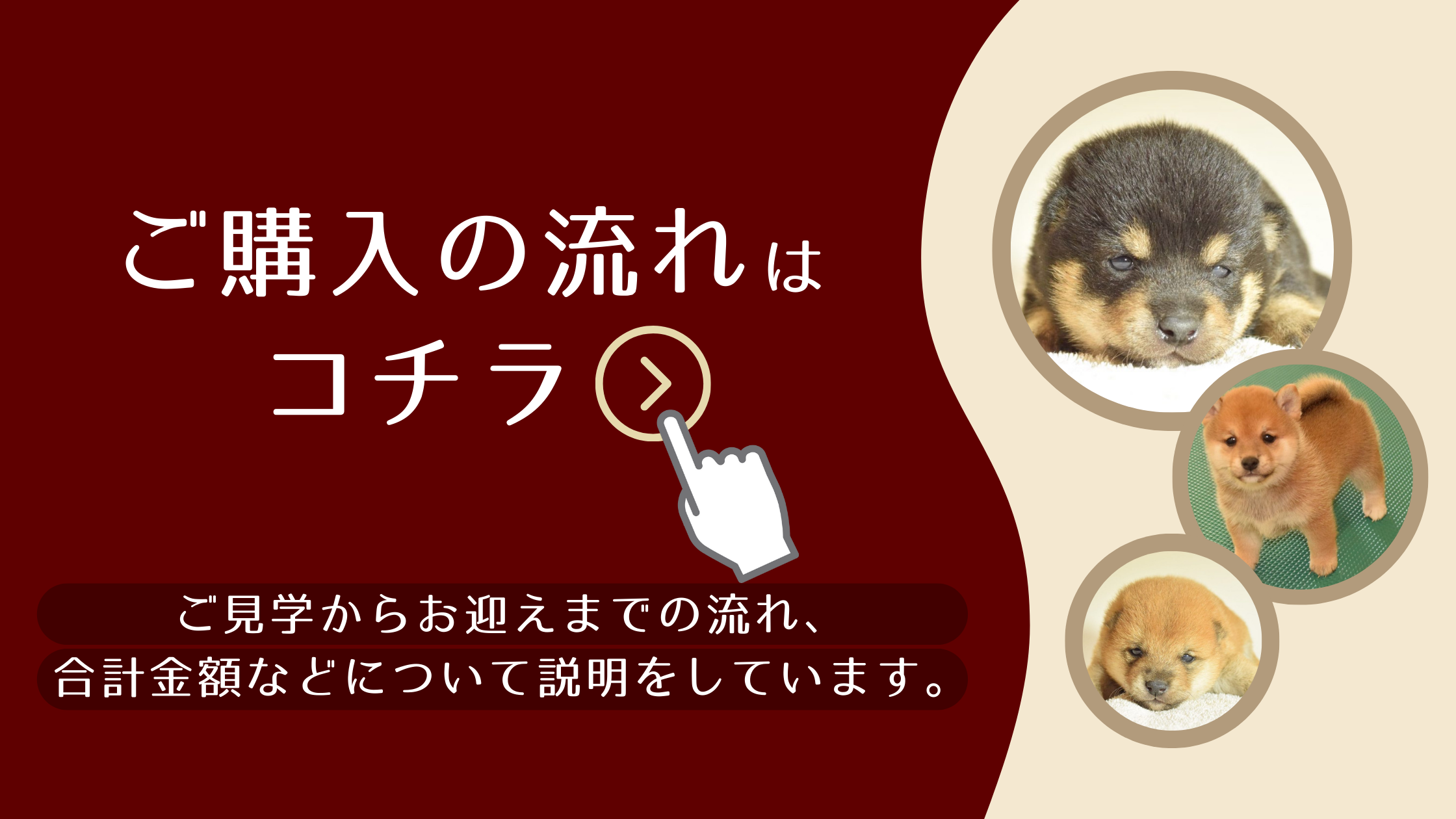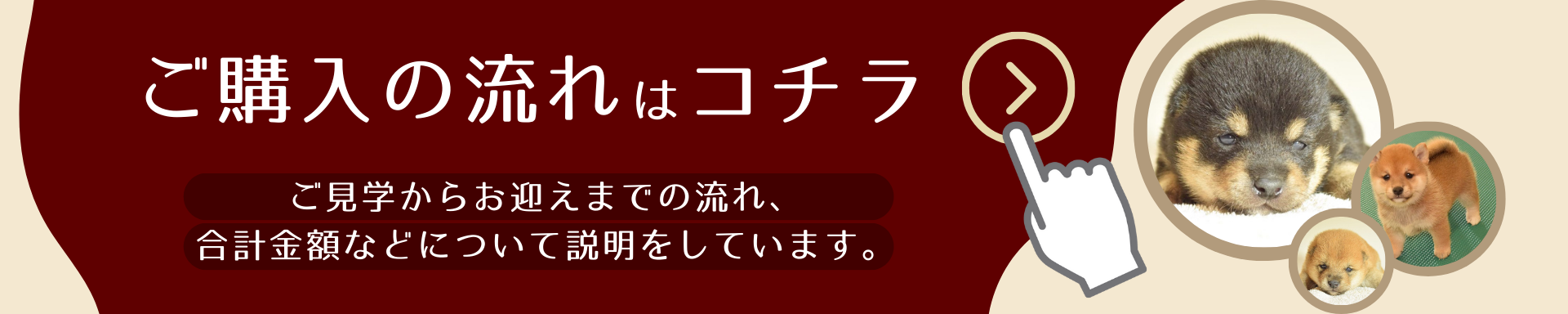お迎えしたい子犬が決まりましたら、お電話もしくはお問い合わせよりご連絡をお願い致します。 「子犬の購入予約」→「お迎え」という流れとなります。