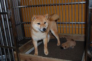↓比較画像:左はお母さん犬、右は普通の柴犬(生後80日)