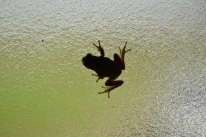 従業員用の入口の扉の窓ガラスに、小さな来訪者です(^^)