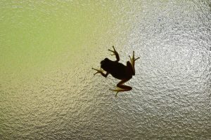 従業員用の入口の扉の窓ガラスに、小さな来訪者です(^^)