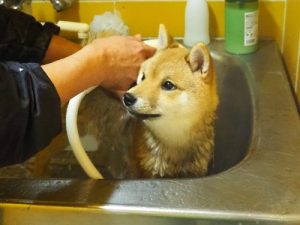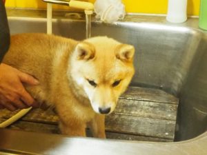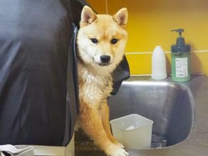柴犬は濡れてもそんなに大きく印象は変わらないんですね。
