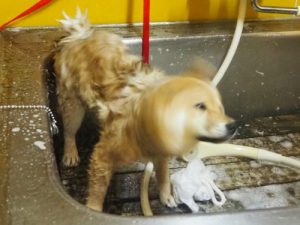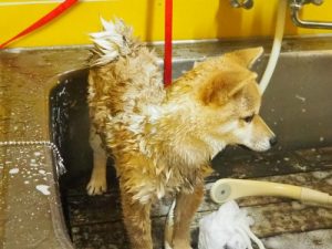 ポメラニアンは濡れるとすごく・・・・・・印象が変わりますよね。