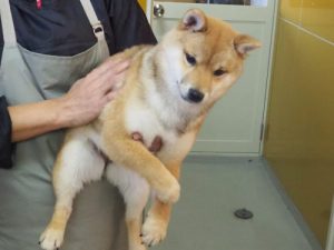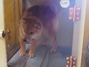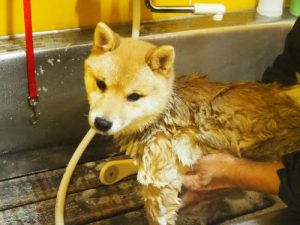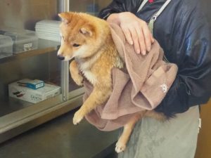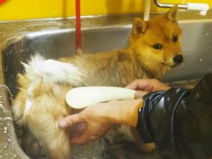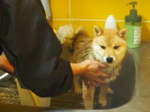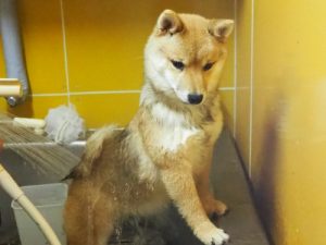 柴犬は濡れてもそんなに大きく印象は変わらないんですね。