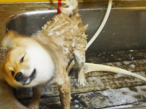 ポメラニアンは濡れるとすごく・・・・・・印象が変わりますよね。