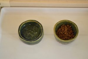 陶芸が趣味のスタッフさんが、ワンちゃん用の食器を作ってくれました!