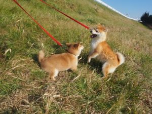 わんちゃん2匹が同じ画に収まるように撮りたいのですが、2匹以上になると1匹で撮るより何倍も難易度が上がります。