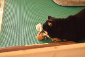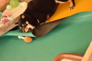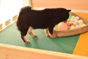 じゃあ、遊ぼうか!と、おもちゃを用意して、一緒に室内ドックランへ行ってみました(^^)。