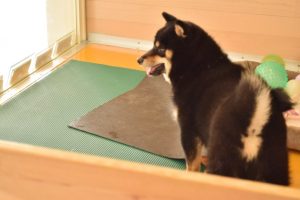 黒豆柴の子といっぱい遊んでいたら隣に居た赤豆柴の子が「私も遊んで〜!」とハシャイでお水の食器をひっくり返してしまいました・・・汗