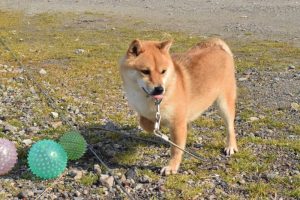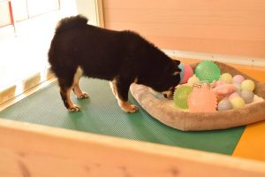 じゃあ、遊ぼうか!と、おもちゃを用意して、一緒に室内ドックランへ行ってみました(^^)。