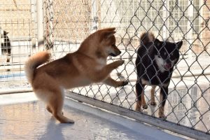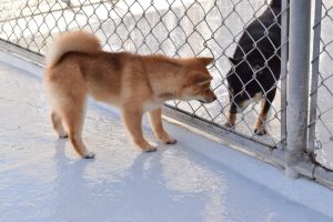 2頭で仲良く遊ぶかな? ?と思いきや、隣の運動場のお友達が気になるようで…