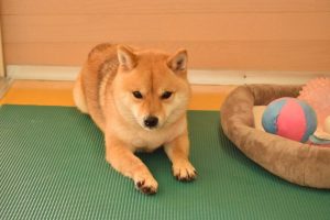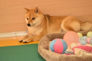 おもちゃ遊びの方が良いなら、仕方ないや…と諦める赤豆柴のワンちゃん。