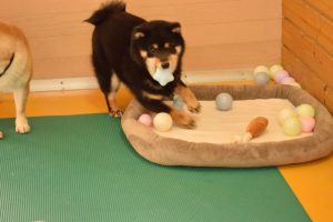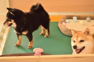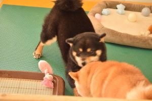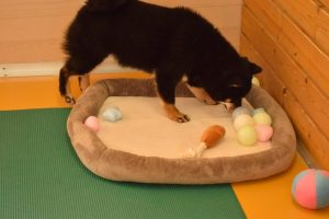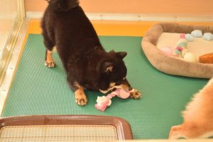私はおもちゃで遊びたいんだワン!と黒豆柴のワンちゃんは、別のおもちゃを選びました(^^)。