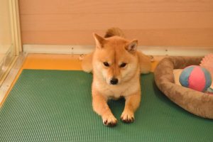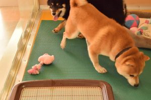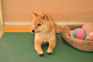 おもちゃ遊びの方が良いなら、仕方ないや…と諦める赤豆柴のワンちゃん。