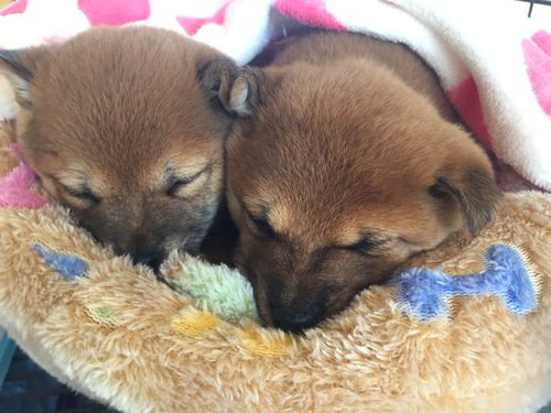 元気に成長中です♪ 12月15日生まれの豆柴ちゃん兄妹、 男の子の飼い主様が決定しました♪ ありがとうございます(*^_^*) とっても好奇心旺盛で、カメラに興味津々です(^_^) まだまだ赤ちゃんな2頭、お昼寝も大好きです♡ 仲良くスヤスヤ…(^-ω-^)zzz