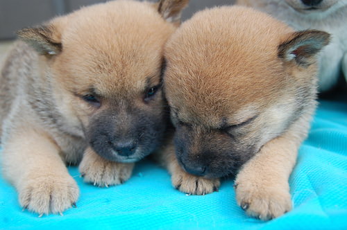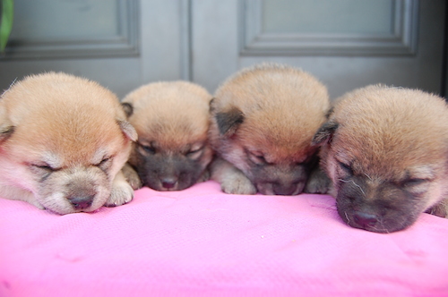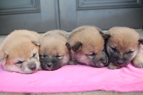 だんだん動きが活発になってきた豆柴ちゃんたち、いろんな物に興味津々のようです。