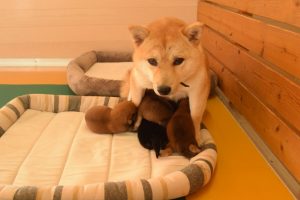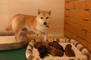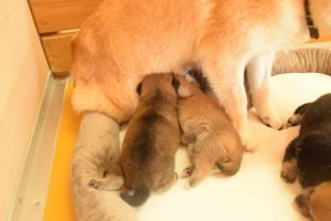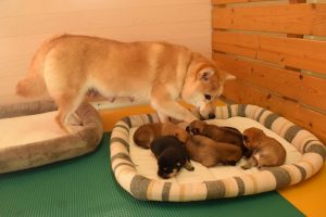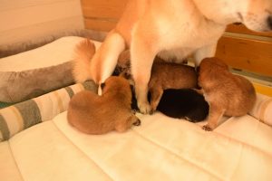 赤ちゃん犬はお母さん犬のお乳に集まって来ました(^^)