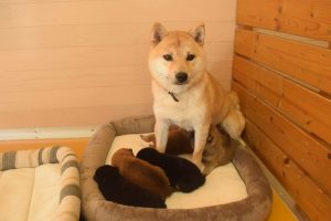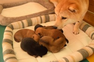 赤ちゃん犬はお母さん犬のお乳に集まって来ました(^^)
