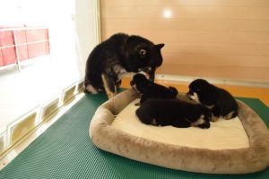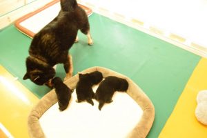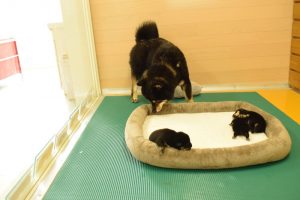 お母さん犬は愛情たっぷりに赤ちゃん犬を育ててくれています。