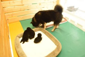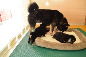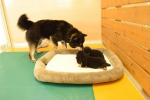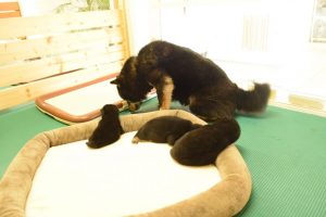 お母さん犬は愛情たっぷりに赤ちゃん犬を育ててくれています。