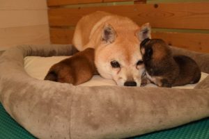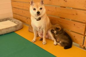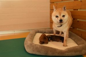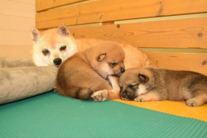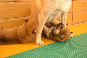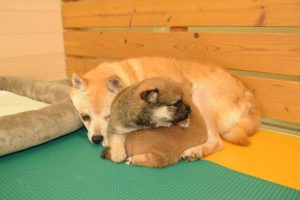 お母さん犬は愛情たっぷりに赤ちゃん犬を育ててくれています♪