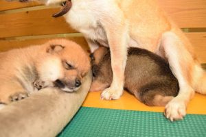 眠っていた子もお母さん犬のお乳に寄って来ました。
