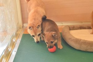 兄弟で仲良く遊びます。お母さん犬も一緒に遊ぶ姿が可愛いです(^^)