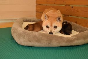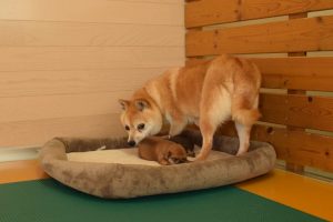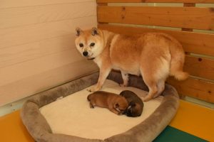 お母さん犬は愛情たっぷりに赤ちゃん犬を育ててくれています♪