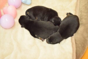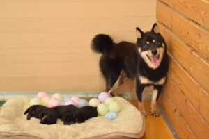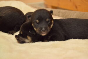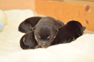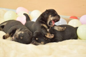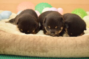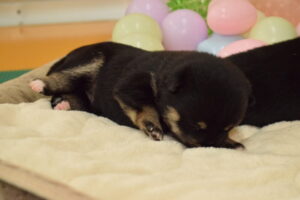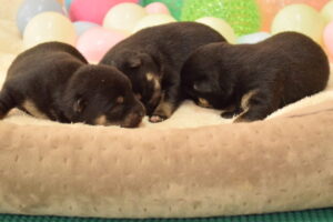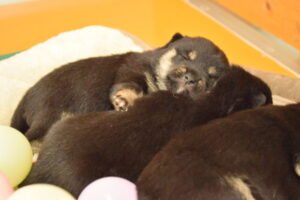 赤ちゃん犬はすくすく成長中です!お目々が少し開いてきました!