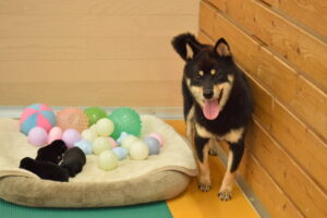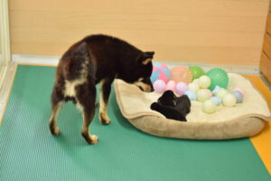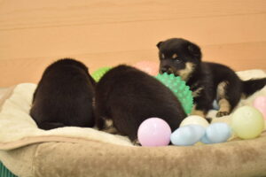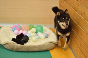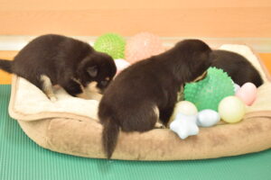 赤ちゃん犬はすくすく成長中です! おもちゃのボールで遊ぶようになりました😊