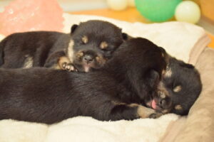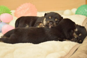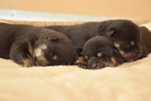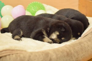 赤ちゃん犬はすくすく成長中です!兄妹並んですやすや気持ち良さそうに眠っています😊