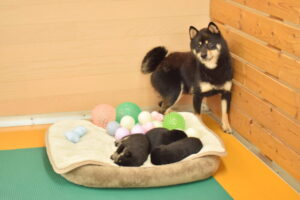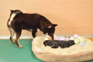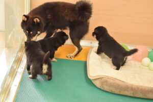 お母さん犬は優しく赤ちゃん犬を育ててくれています♪