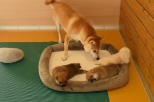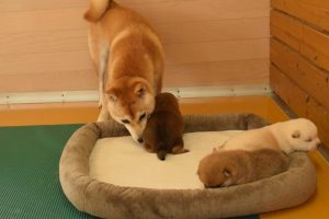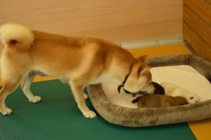 お母さん犬は愛情たっぷりに赤ちゃん犬を育ててくれています。