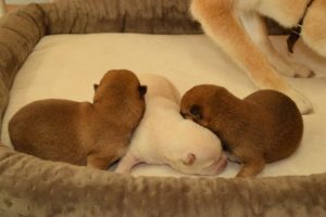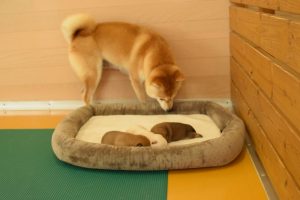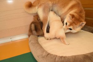お母さん犬は愛情たっぷりに赤ちゃん犬を育ててくれています。