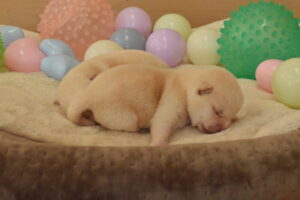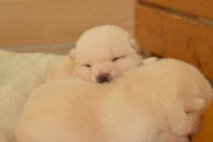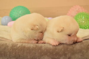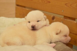 赤ちゃん犬はすくすく成長中です! お目々が開いて来ました!