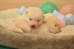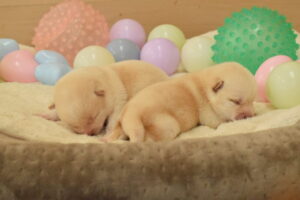 赤ちゃん犬はすくすく成長中です! お目々が開いて来ました!