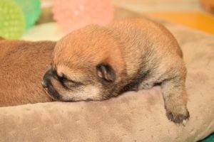 赤ちゃん犬はすくすく成長中です(^^)。 気持ち良さそうにすやすや眠っています。