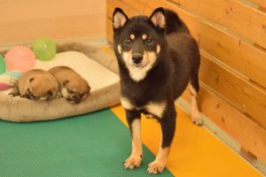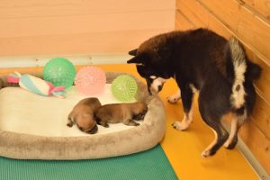お母さん犬は愛情たっぷりに赤ちゃん犬を育ててくれています。
