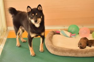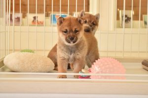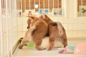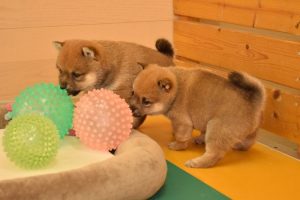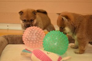 子犬はすくすく成長中です(^^)。おもちゃで遊ぶ姿がとても可愛いです♪