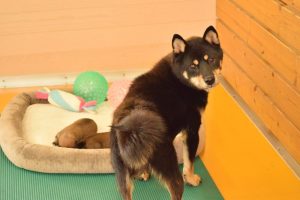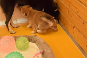 お母さん犬は優しく赤ちゃん犬を育ててくれています(^^)