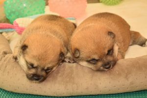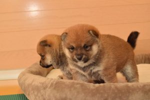 赤ちゃん犬はすくすく成長中です(^^)。お目々がパッチリ開いてとても可愛いです♪