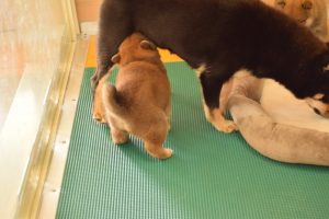 遊んでお腹が空いたら、お母さん犬のお乳に集まって来ます(^^)。