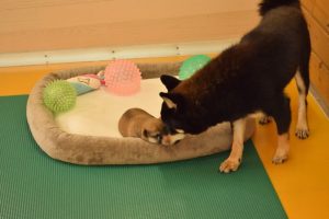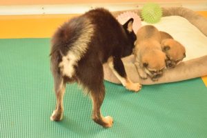 お母さん犬は優しく赤ちゃん犬を育ててくれています(^^)