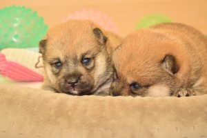赤ちゃん犬はすくすく成長中です(^^)。お目々がパッチリ開いてとても可愛いです♪