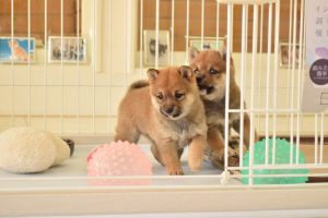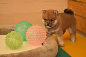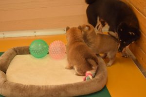 子犬はすくすく成長中です(^^)。おもちゃで遊ぶ姿がとても可愛いです♪