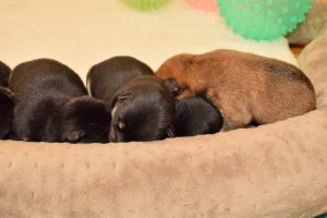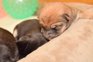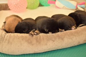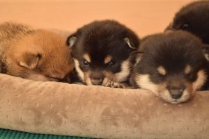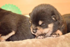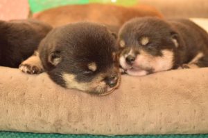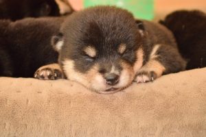 赤ちゃん犬はすやすや眠っています(^^)。眠るのがお仕事です♪