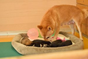お母さん犬は優しく赤ちゃん犬を育ててくれています(^^)