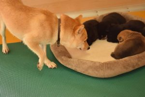お母さん犬は愛情たっぷりに赤ちゃん犬を育ててくれています。