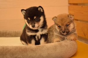 子犬はすくすく成長中です(^^)。 兄妹で仲良く並ぶ姿がとても可愛いです♪