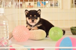 子犬はすくすく成長中です(^^)。おもちゃを前に、くつろぐ姿がとても可愛いです♪