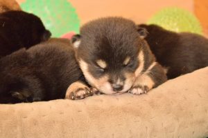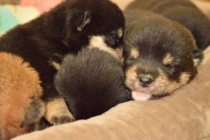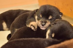 赤ちゃん犬はすやすや眠っています(^^)。眠るのがお仕事です♪